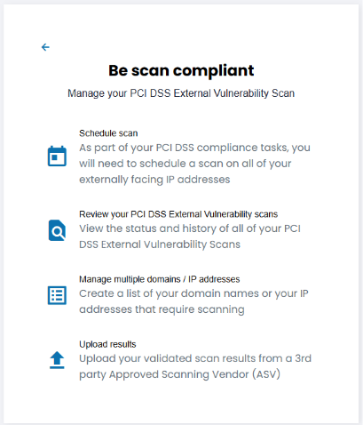 To do this, on the main dashboard in the “Be scan compliant” widget select “Manage”.