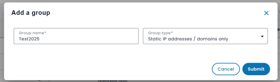 Next you need to add your static IP address(es) or web domain(s) to complete the set-up of your group..