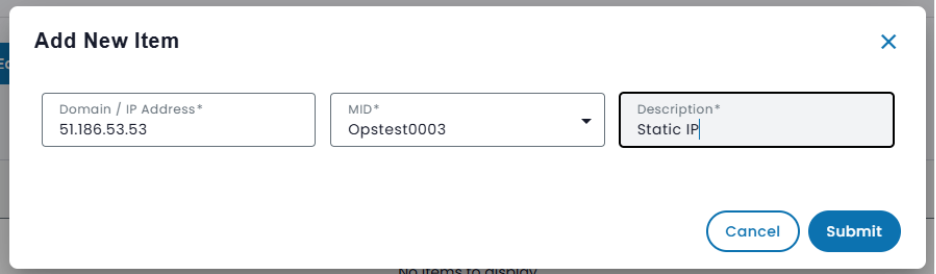 - Select “Add new item”. You will need to do this for each IP address and/or web domain.